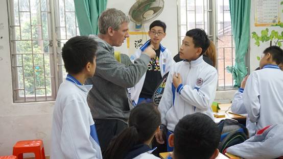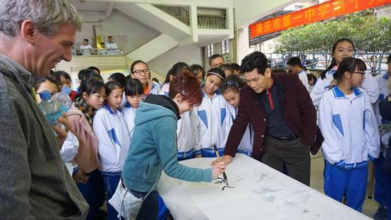 25日下午,学员们赴肇庆一中初中部进行参观交流。首先,他们参观了肇庆一中校史室,了解了学校建设发展基本情况;随后,学员们分成两组,分别观摩七年级英语课堂和九年级物理课堂,观课结束后在英语教研室与一线教师们展开了面对面交流;最后,学员们参观了学生社团和体艺节活动,包括学校管乐团、学校合唱团、百人书法比赛、环保时装秀、简易机器人展示等,这些活动让外教们看到了中国基础教育中素质教育开展所取得的良好成效。学员们表示,在肇庆一中的参观令他们大开眼界,这对他们今后更好地指导中国学生学习提供了很好的借鉴。