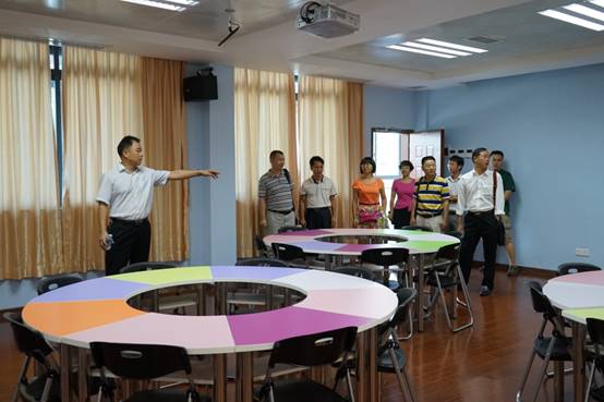 肖起清院长带客人们参观教师发展中心并介绍各个功能室的情况