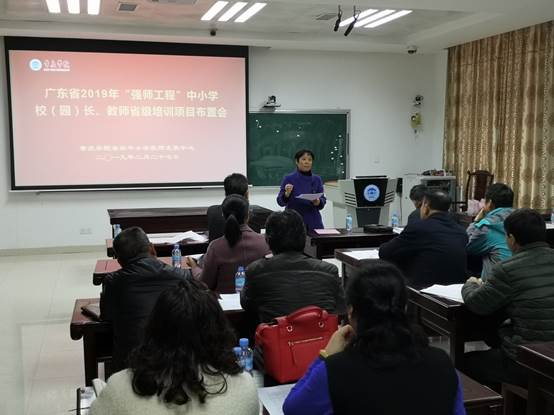 接着,肖晓玛副主任讲话。肖主任对2019年省“强师工程”中小学校(园)长、教师省级培训工作的实施方案要点进行了解读,并对本年度中心及各学院所开展项目的具体工作进行了布置。她还表示,我中心经过两年的努力,在探索中逐渐积累了一定的基础和经验,我中心会积极同各院系进行交流,共同做好项目实施过程中的各项工作。