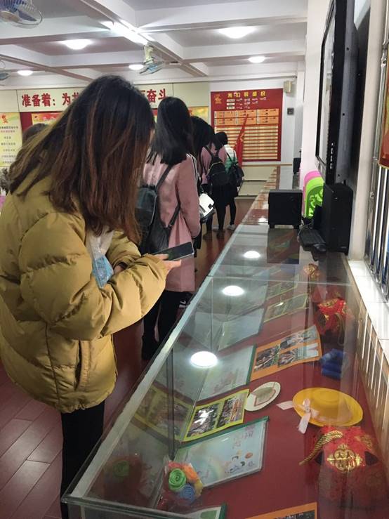 学员们在观看奥威斯小学的信息长廊,了解奥威斯小学的基本情况。