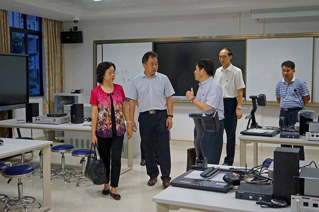 肖起清院长在陪同领导参观的过程中详细介绍了发展中心各个功能室的建设和使用情况,并表示中心将在新的形势和政策下,继续响应和深化教师教育改革的号召,把对一线中小学教师的培训工作落到实处,培养出高质量的教师人才队伍。