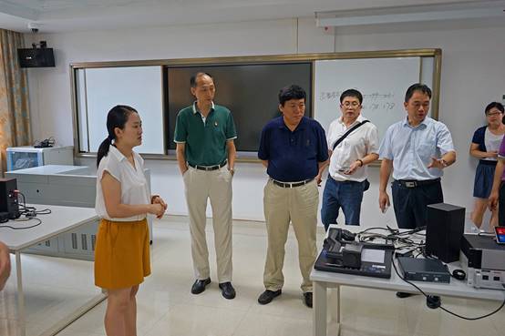 客人们在和飞校长和肖起清院长的陪同下参观了我中心书画训练室、普通话测试站、远程交互中心、教学设计与反思室、教师信息能力训练室、智慧教室等主要功能室。客人们对我中心教师教育职前职后一体化以及硬软件设施倍加赞赏,表示有许多值得借鉴之处。