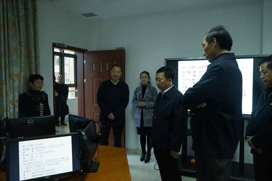 和飞校长等陪同市委领导们参观了发展中心的主要功能室,介绍了发展中心的建设与使用情况以及在职教师培训等方面所开展的工作。市委领导对我市中小学教师在职培训及我校省级中小学教师发展中心未来的发展作出指示,并提出了许多有建设性的宝贵意见。