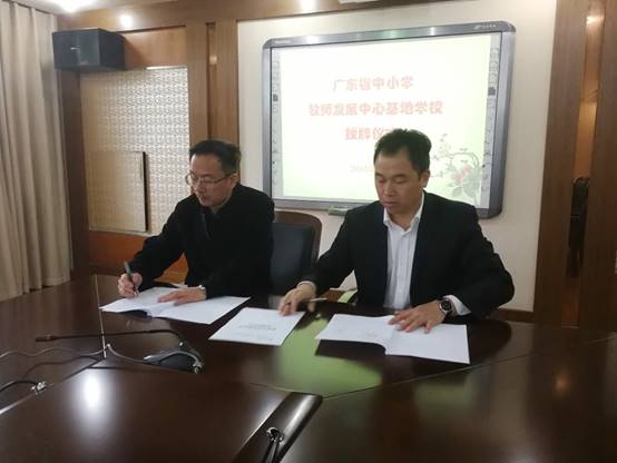 签约仪式上,首先,双方都就粤浙地区基础教育发展情况、中小学教师发展情况、教师教育和教师培训情况等展开了交流,并就双方在共建“教师专业发展学校”方面可能的合作进行了深入探讨;随后,肖院长与各校校长分别签署了共建“教师专业发展学校”协议书;之后,肖院长向各校授“广东省中小学教师发展中心基地学校”牌,并为12名高级教师、特级教师颁发了广东省“强师工程”项目学员跟岗学习指导专家聘书。