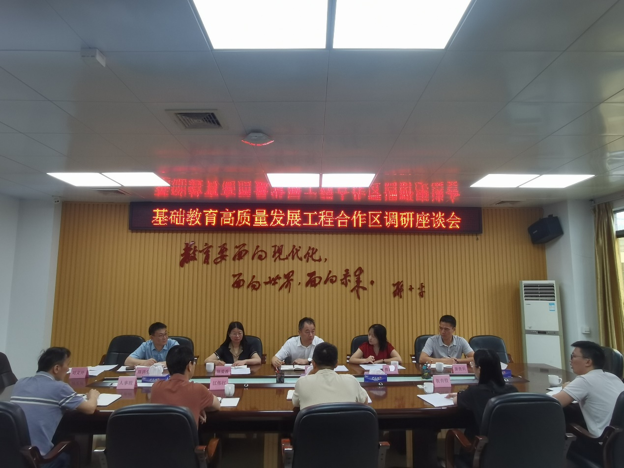 肖起清介绍了我校教师教育的发展成就,并围绕“双百行动”教育帮扶、“三所学校”质量提升、师资人才队伍培养质量提升、专家工作室、开放课题等内容,与对方展开交流。