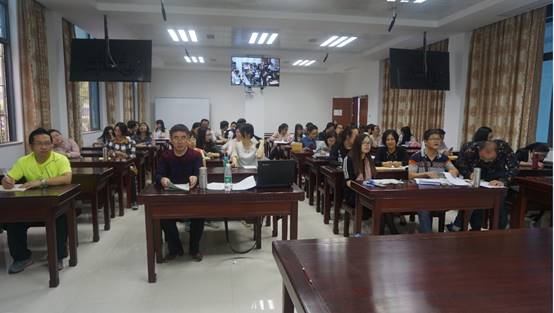 2017年4月8日上午,华中科技大学2014级、2015级59名教育硕士在职研究生(肇庆班)在taptap点点官方网站教师发展中心106室又开讲啦。本次学习的主题是“国外中小学教育”,为期三天,由华中科技大学黄芳博士主讲。勤奋好学的学员们早早就在课室等候上课。59位学员中有每次上课都坐最前排积极进取的校长、有比翼双飞的三对夫妻、有年轻有为的数位青年教师,他们都是中小学教育的中坚力量。相信学业有成后,他们定能为中国基础教育的发展做出更好、更多的贡献。