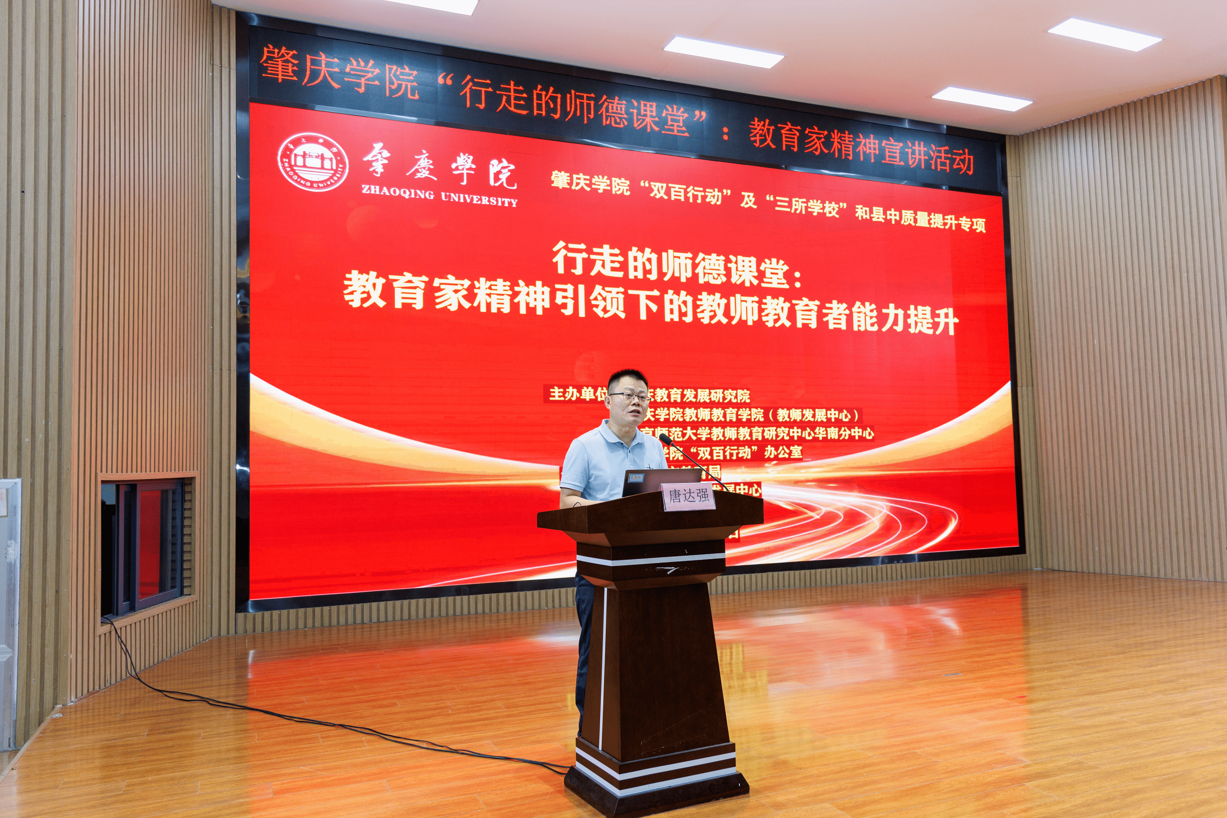 6月18日,由肇庆教育发展研究院、taptap点点官方网站taptap点点官方网站(教师发展中心)、北京师范大学教师教育研究中心华南分中心、taptap点点官方网站“双百行动”办公室主办,四会市教育局承办的“行走的师德课堂:教育家精神宣讲活动——taptap点点官方网站‘双百行动’及‘三所学校’和县中质量提升专项”在四会市玉城学校顺利开展。北京师范大学专家、taptap点点官方网站专家学者,四会市教育局领导及taptap点点官方网站(四会)合作区教育实习生及基地指导教师齐聚一堂,共探教育家精神的传承与实践。
