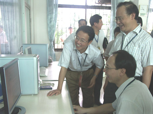 (校报记者)9月25日上午,评估专家组一行8人,在组长刘鸣教授、副组长袁银男教授的带领下,到我校网络中心进行了考察,了解网络中心的建设情况以及网络中心为教学、科研工作服务的情况。