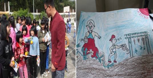 福利院的主任给我们讲了福利院的情况。在这里,每个孩子都有自己的一块菜地,这是他们的小天地,由他们自己决定在菜地上种什么,由施肥到收获,全由他们自己一手包办,这就是我们一进福利院就看到的那片绿色。他们还养有一些鸡鸭,伙食的问题基本能够自给自足。除此之外,每个孩子还有属于自己的一份“工作”。有的孩子被分配到去开福利院的大门,有的被分配去给客人倒茶,有的被分配到去厨房做饭等等。这些劳动不仅能够解决福利院的部分经济、人手问题,更重要的是,能够让孩子们懂得他们在这个世界上并不是毫无用处的,福利院需要他们,社会需要他们,这个世界并没有把他们抛弃。