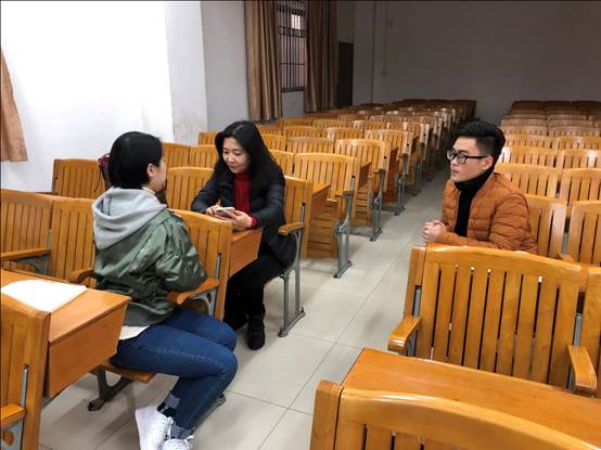 图 2 薄艳玲老师为顶岗实习生们进行岗前培训学习期间注意事项指导