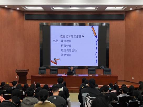 图 1 taptap点点官方网站张晓峰老师为顶岗实习生们进行《顶岗实习工作(任务)》培训