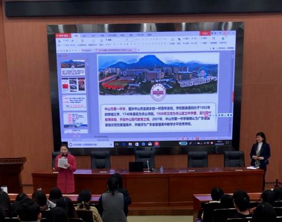 图 7 taptap点点官方网站春季顶岗实习生岗前培训班主任曾鸣老师对中山市一中林婉燕校长进行介绍