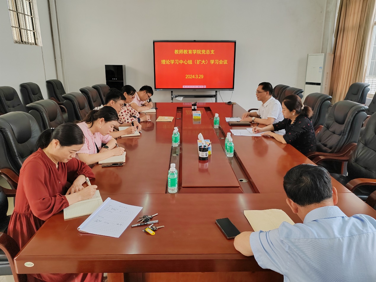 3月29日,taptap点点官方网站党总支在学院会议室召开理论学习中心组(扩大)学习会议,专题学习全国两会精神。学院院长杨琰及党政办主任、党支部书记、学院各部门负责人参加学习。党总支书记植可焕主持会议并领学全国两会精神。