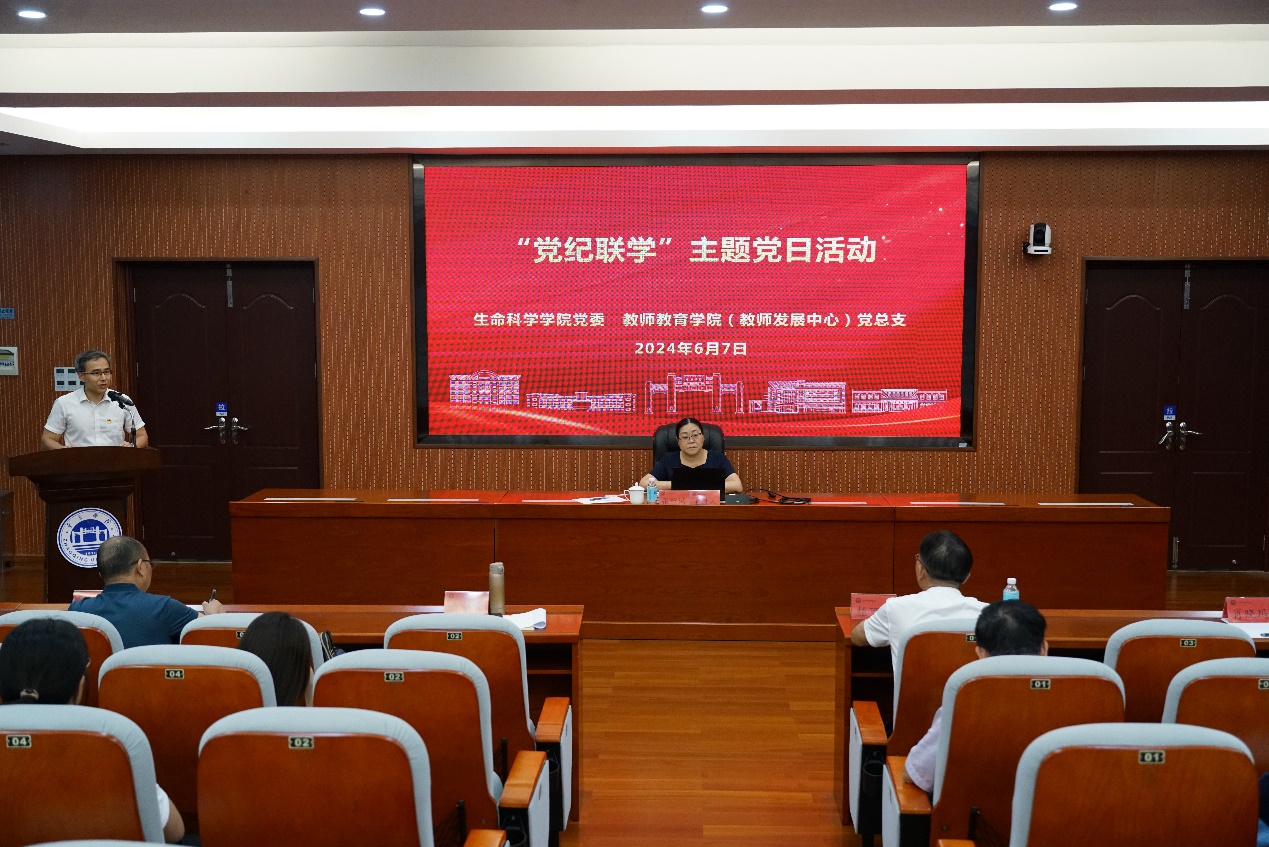 6月7日,taptap点点官方网站(教师发展中心)党总支与生命科学学院党委联合举办“党纪联学”主题党日活动。学院党总支书记植可焕出席,生科院党委书记黄剑青主持。