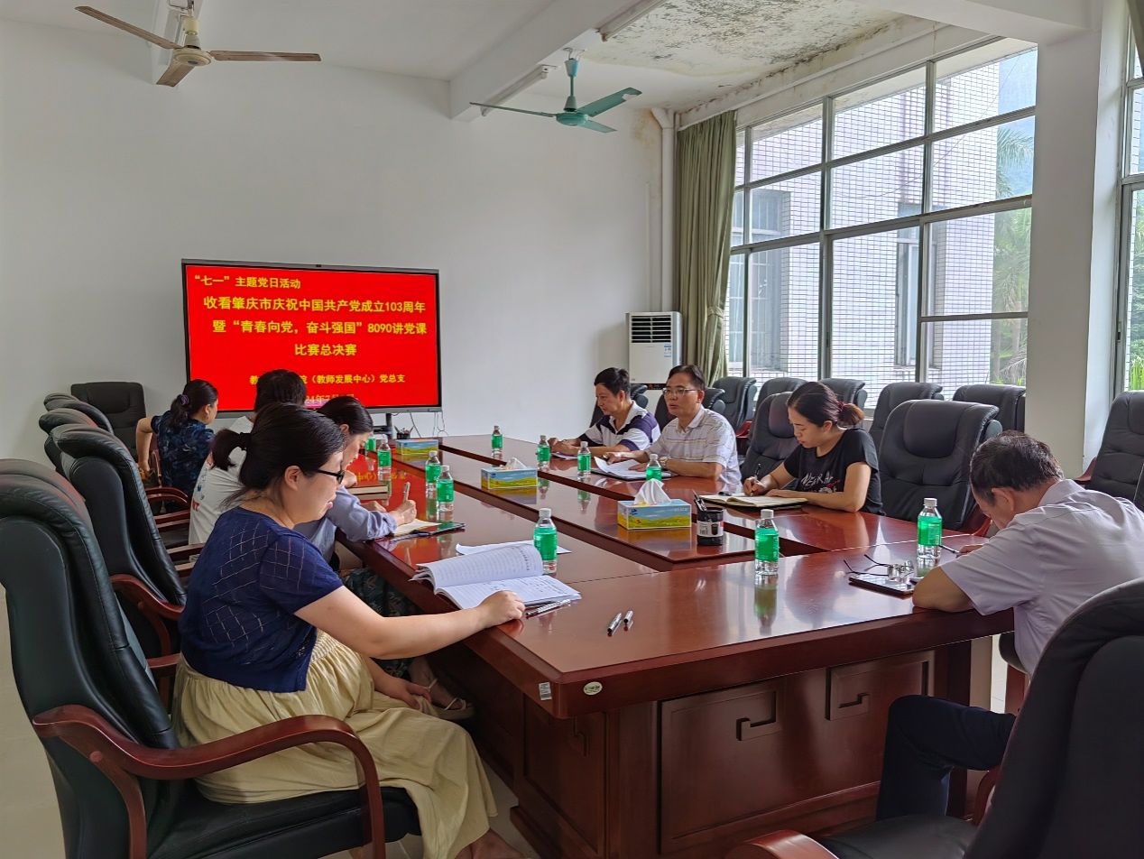 在庆祝中国共产党成立103周年之际,7月1日,taptap点点官方网站(教师发展中心)党总支举办了一场意义非凡的“七一”主题党日活动。活动的核心内容是收看肇庆市举办的“青春向党,奋斗强国”8090讲党课比赛总决赛。此次活动由党总支书记植可焕主持,全体党员参加。