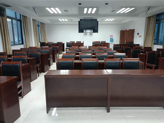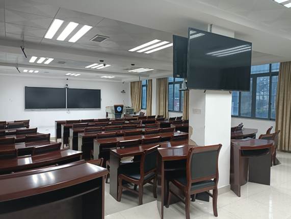 课室配置:面积105平方米,活动桌椅,可容纳73人,配有教师电脑、双电子显示屏、录播系统,无黑板。