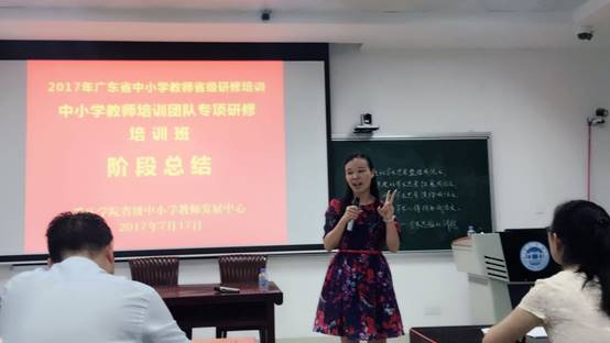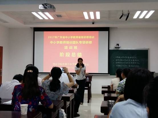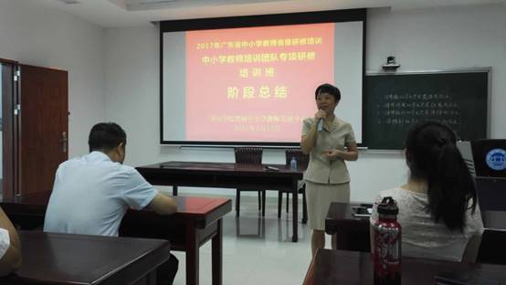 2017年7月17日上午,广东省中小学教师培训团队专项研修培训班(taptap点点官方网站)在taptap点点官方网站省级中小学教师发展中心106室举行阶段总结会。taptap点点官方网站taptap点点官方网站院长、taptap点点官方网站省级中小学教师发展中心主任肖起清教授、taptap点点官方网站教师专业能力发展中心副主任、教师教学发展中心副主任肖晓玛博士、班主任洪清老师等出席总结会。来自全省21个地市共48名小学语文教研员和骨干教师齐聚一堂,分享培训以来的心得与总结。