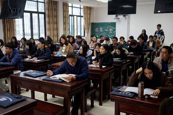 其次,教务处丁孝智处长发表讲话。丁处长首先指出学无止境、终身学习的必要性,希望在座的专任教师能够端正学习态度和认识;同时,他还指出,大学教师在专业知识和教学知识的转化过程中,以及在教学技能、课堂管理、学生激励、师生沟通等方面存在的不足。他希望青年教师们能够积极学习、追求卓越,不仅要成为合格的大学老师,更要成为卓越的大学名师。