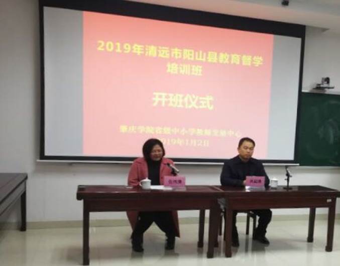 2019年1月2日下午,清远市阳山县教育督学培训班在taptap点点官方网站省级中小学教师发展中心106课室隆重开班。清远市阳山县教育督导室伍伟清主任、taptap点点官方网站taptap点点官方网站肖起清院长以及来自阳山县教育督学培训班的53名学员,共同出席了开班仪式。