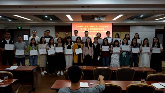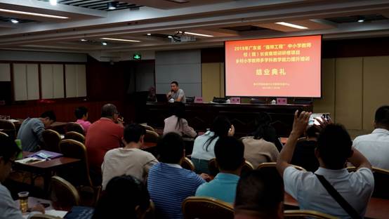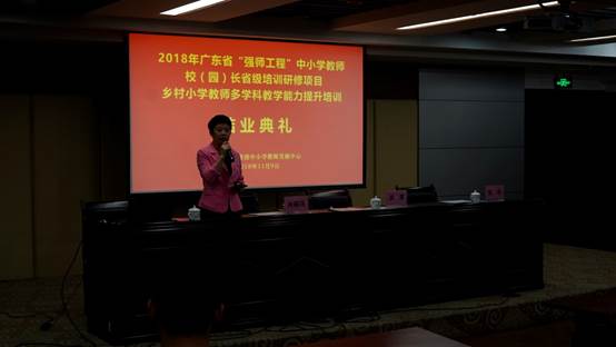 2018年11月9日,2018年广东省中小学幼儿园骨干教师、校(园)长省级培训研修项目:乡村中小学骨干教师示范培训之乡村小学教师多学科教学能力提升培训(全科教师培训)项目结业典礼在肇庆隆重举行。taptap点点官方网站教师专业能力发展中心、教师教学发展中心副主任肖晓玛,本次培训班班主任、taptap点点官方网站教师洪清、张琼,以及来自全省各地100名小学乡村体育、美术骨干教师共同出席了本次结业典礼。