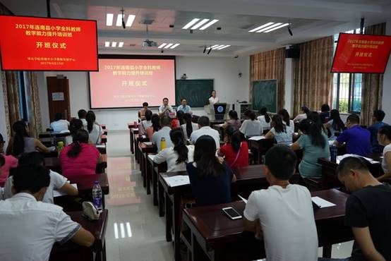 8月15日上午,连南县小学全科教师教学能力提升培训班开班仪式在taptap点点官方网站教师发展中心106室隆重举行。taptap点点官方网站taptap点点官方网站院长、taptap点点官方网站省级中小学教师发展中心副主任肖起清教授,连南县教育局卢德成副局长,taptap点点官方网站教师专业能力发展中心副主任肖晓玛博士,以及来自连南县39所学校共49名小学全科教师共同出席开班仪式。
