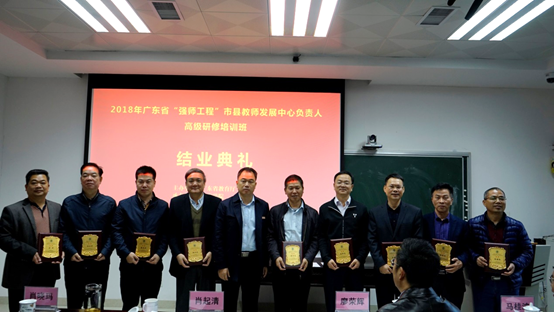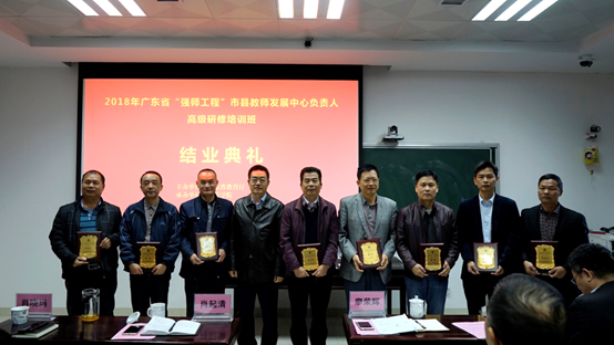 接下来,举行了结业汇报与授纪念牌仪式。清远市教育局丘青山主任、梅州市大埔县教师进修学校黎武兴副校长、广州市花都区教育局教研室何彪书记等三位学员代表,针对为期七天的学习内容、学习收获、学习感悟及本地区的实际行动等内容,展开了精彩生动的结业汇报。结业汇报后,taptap点点官方网站继续教育指导中心廖荣辉主任、taptap点点官方网站taptap点点官方网站肖起清院长为每位学员颁发放由taptap点点官方网站省级中小学教师发展中心精心准备的学员纪念牌。