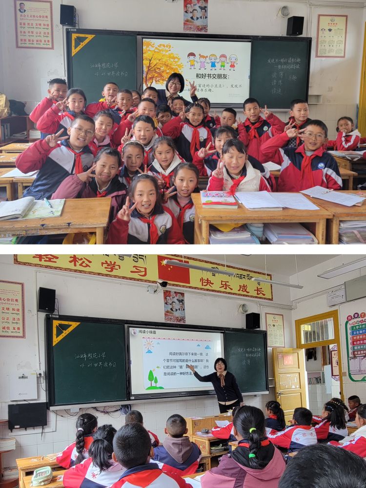 汕头市桂花小学赵燕群校长带着爱与责任走进米林小学,给孩子们带来了一节《发现不一样的读书乐趣》的整本书阅读导读课,在孩子们心里种下阅读的种子。赵老师带领孩子们认识了书的封面、封底、勒口、目录,借助目录把握全书主旨、结构布局。通过书中片段的讲解让学生初步学会将一本书读懂、读透的阅读方法。赵老师自然流畅的教学设计,激发了孩子们的阅读兴趣。孩子们在愉悦温暖的课堂上习得了方法,尽情享受读书的乐趣。