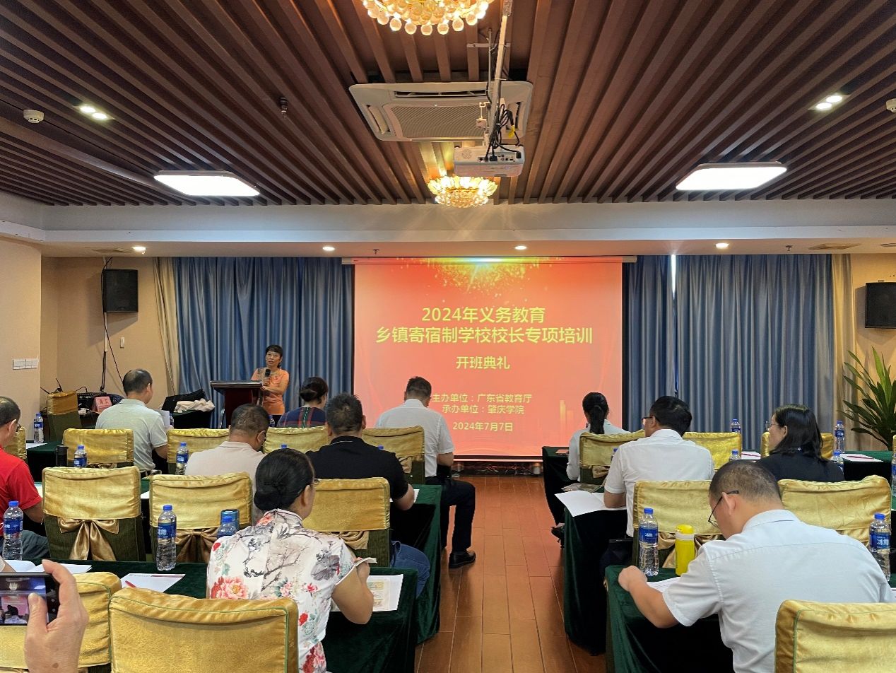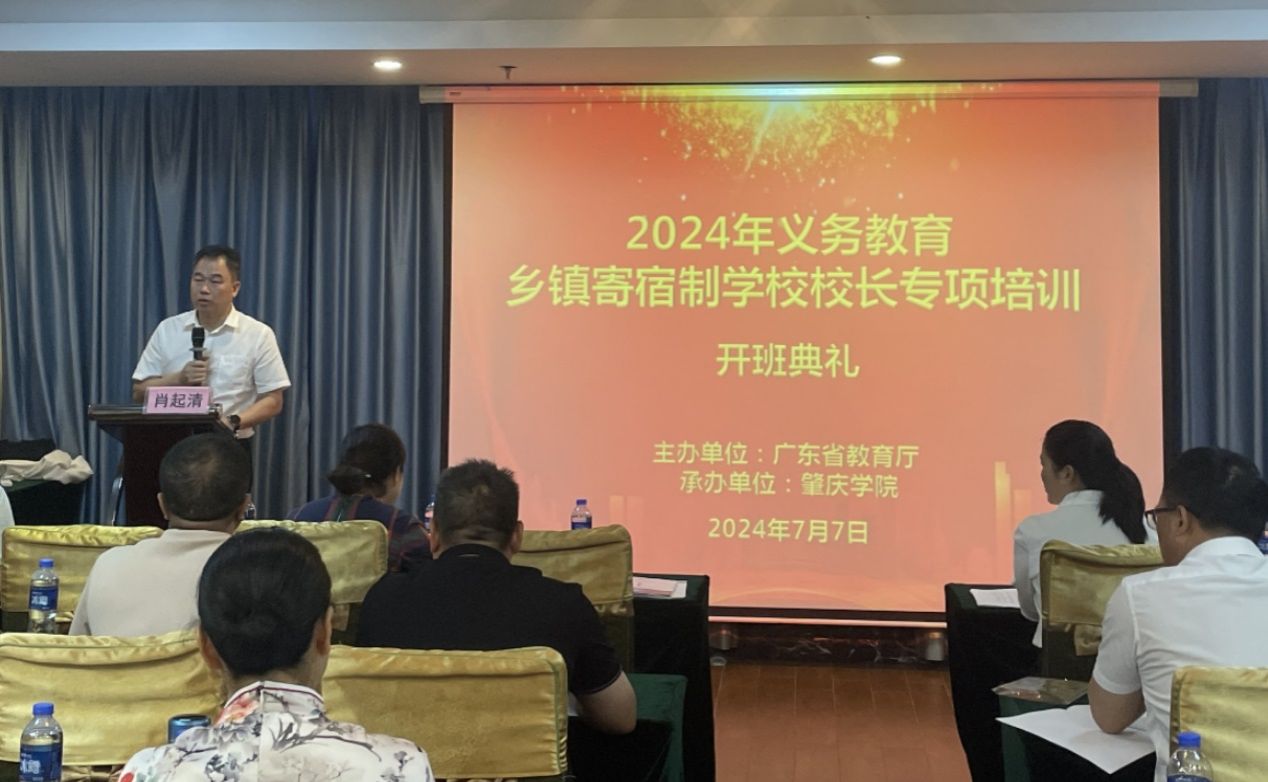 由taptap点点官方网站主办、taptap点点官方网站省级中小学教师发展中心承办 的2024 年义务教育乡镇寄宿制学校校长专项培训项目第一期培训班于2024年7月7日上午在肇庆国际大酒店会议室开班。taptap点点官方网站副校长肖起清,taptap点点官方网站taptap点点官方网站院长杨琰、副院长肖晓玛、班主任李小定和鲍染,广东省各地义务教育乡镇寄宿制学校校长91人等参加了开班典礼。