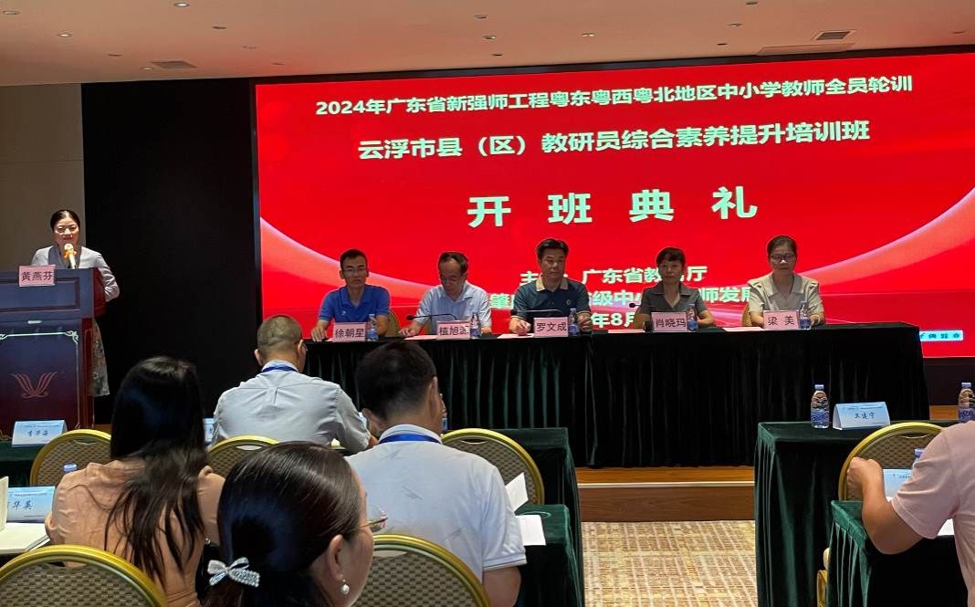 8月19日,由taptap点点官方网站主办、taptap点点官方网站承办的“云浮市县(区)教研员综合素养提升”培训班在维也纳酒店举行开班仪式。taptap点点官方网站taptap点点官方网站副院长肖晓玛,云浮市教师发展中心主任罗文成,培训班班主任植旭源、梁美、徐朝星,云浮县(区)教研员78名共同出席。taptap点点官方网站taptap点点官方网站黄燕芬老师主持仪式。