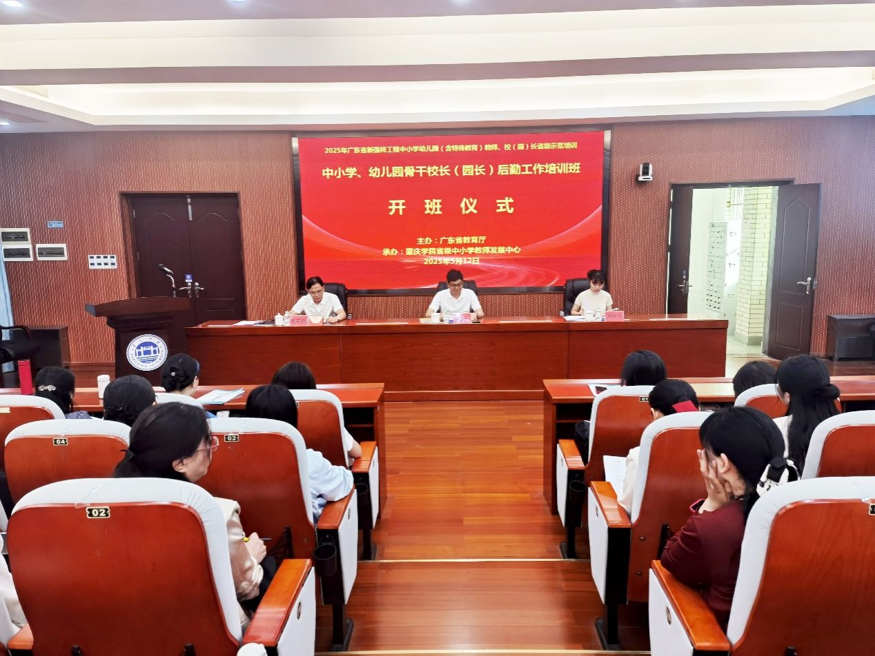 5月12日,广东省新强师工程项目中小学、幼儿园骨干校长(园长)后勤工作培训班(第一期)在taptap点点官方网站第二会议室开班。副校长唐冬冬、taptap点点官方网站学校后勤管理处胡沛均、培训班班主任以及来自21个地市的135名中小学、幼儿园骨干校长(园长)及相关教育人员出席了本次开班仪式。开班仪式由taptap点点官方网站(教师发展中心)党总支书记植可焕主持。